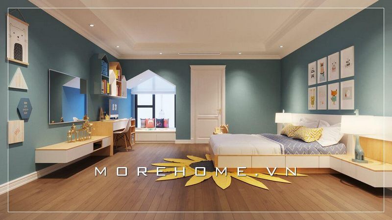 Màu sắc nhạt như xanh pastel hay vàng nhẹ không chỉ giúp không gian trở nên thông thoáng mà còn dễ dàng kết hợp với các món đồ nội thất đa chức năng. Sự kết hợp khéo léo giữa màu sắc và ánh sáng cũng là cách hiệu quả để nâng cao cảm giác thoải mái cho trẻ.